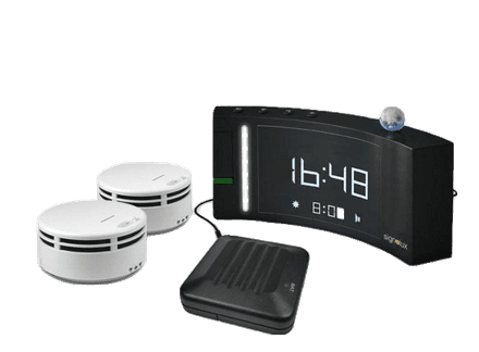 Um auch ohne Hörsystem wach zu werden, beim Fernsehen die Türklingel zu hören, die Gefahr von Feuer und Wasser in Ihrer Wohnung rechtzeitig zu bemerken, bieten wir Ihnen ein großes Sortiment an verschiedenen Lichtsignal-Anlagen und Weckern an.